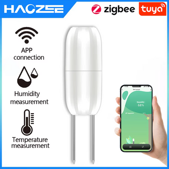 Haozee Tuya Zigbee Soil Temperature Humidity Tester IP67 Waterproof Support Home Assistant Zigbee2mqtt for Garden Farmland Planting