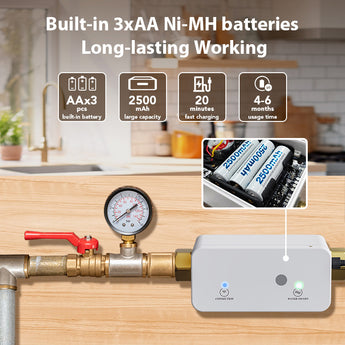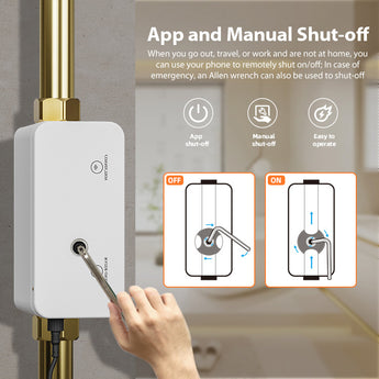 Auto Shut-Off: Automatically shuts off water supply when leaks are detected to minimize damage and save water.