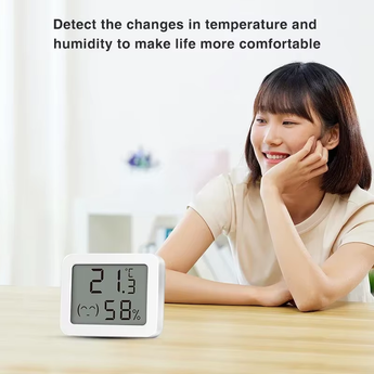 • LCD Display:The thermometer has an LCD display that shows the temperature and humidity levels.