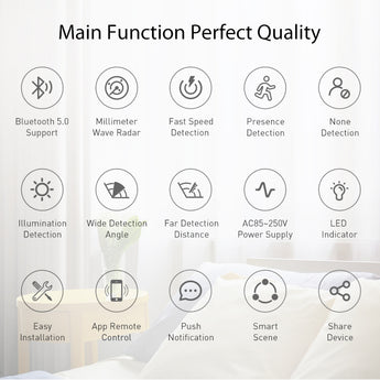 Smart human presence sensor with light control: The human Presence Sensor can detect both human movement and stillness. In addition, the product can be directly connected to the light, so that the light is on when there is someone and off when there is no one, so as to achieve better energy saving effect.
