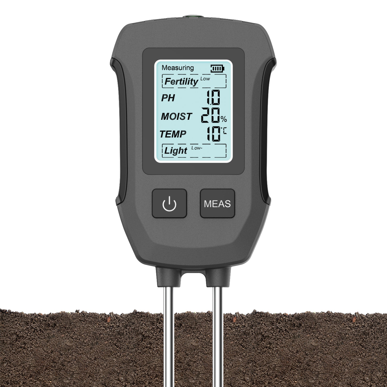 Testeur de sol multifonction : Notre testeur de sol mesure rapidement l'humidité, la température, le pH, la fertilité et l'ensoleillement du sol pour vous aider à mieux prendre soin de vos plantes et fleurs. En mesurant l'humidité, le pH et la température du sol, vous savez quand ajuster l'humidité et le pH.