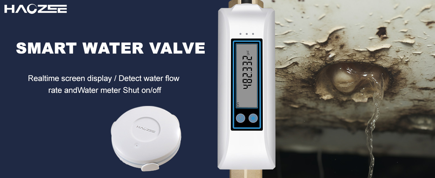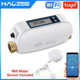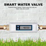 Vanne d'eau intelligente WiFi Haozee avec arrêt automatique, détecteur de fuite d'eau Wi-Fi, débitmètre d'eau, batterie rechargeable intégrée, pour tuyau DN20 de 3/4 po de diamètre