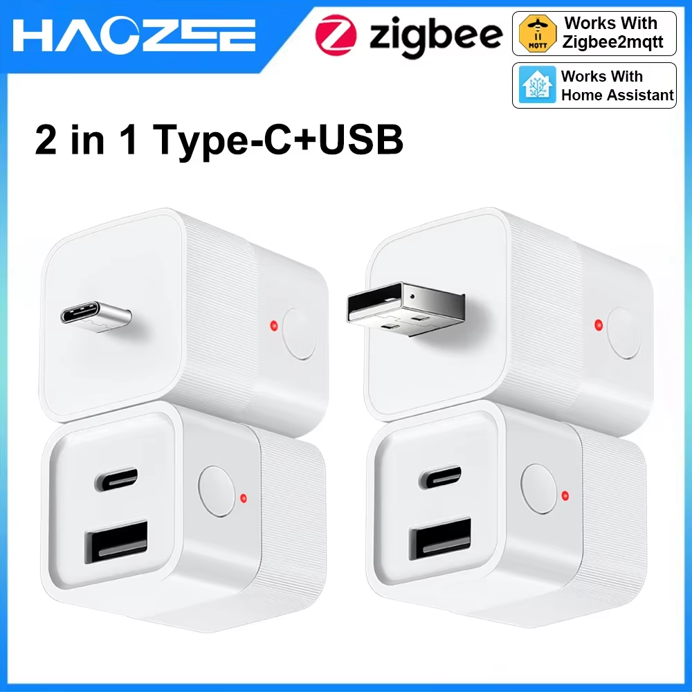 Haozee 2 in 1 Zigbee 3.0 Smart USB Adapter Switch Mini USB Type-C Power Adaptor Plug Works with Home Assistant Zigbee2MQTT ZHA